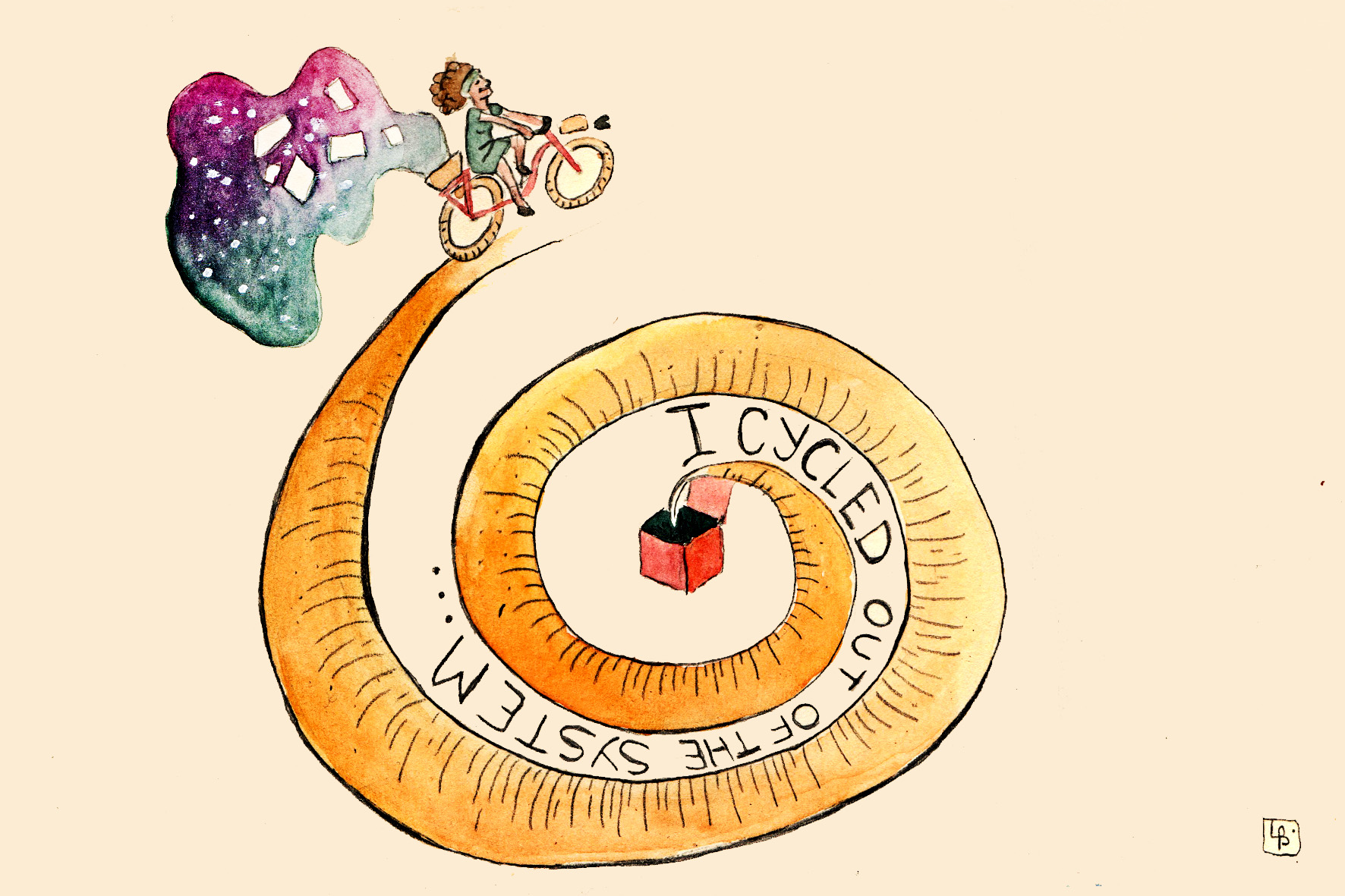 Seguindo o método da autoetnografia e o suporte ‘diário gráfico’ enquanto ferramenta de percepção, em 2018 realizou-se missão artística auto proclamada, a pedalar o caminho de Santiago. Saindo do Porto com apenas 20 euros e sem compromisso, os postais foram vendidos e /ou trocados pelo caminho para custear alojamentos e refeições. Esta missão foi de grande sucesso, Luciana retornou ao Porto com exactos 20 euros, vivências mágicas e mais felicidade em viver sem desperdícios. Esta experiência a rendeu outra missão: ir para a Ásia. Quase um chamado intuitivo e instintivo do corpo, Luciana partiu com 200 euros e lá permaneceu por quatro meses (entre norte da Índia e da Tailândia). O objetivo era continuar a ilustrar e registar conhecimentos de vida elegendo como bússola o instinto/intuição de movimento ou pausa do corpo. Entretanto, objetivos adaptaram-se à necessidade por gerar recursos para a sobrevivência, alterando o tempo disponível para criar. No percurso, oficinas de narrativa visual e exercícios de criação foram ministrados à crianças Israelenses; Monges ofereceram espaço para exposição relâmpago e arrecadamento de donativos para seguir viagem e uma bicicleta surgiu emprestada para viver na Tailândia por 1 mês e meio a vender postais e prints. Foram experiências que proporcionaram sabedoria e compreensão sobre ‘migrar’, persistência em um caminho artístíco, e sobre a percepção da própria identidade enquanto ‘corpo/bicho/mulher’ que se move.